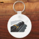 A black steam train going along the tracks. This design looks really effective on these Keychain