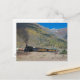 Steam train leaving town postcard