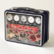 This is a standard metal lunchbox that appears to work just fine. We designed this box ourselves with an uploaded photo and custom text on the front and back. It looks absolutely beautiful except the front of the lunchbox is not centered like it shows in the photo. The print borders don't align with the inset flat part of the box where the preview photo online showed it perfectly centered in there. The back looks nice and centered though.