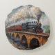 Steam Train on a Bridge - Oil Painting Round Pillow