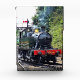 A photographic design of a beautifully preserved steam train.