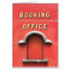 A photographic design of the front of an old railway station booking office, where you could purchase your travel tickets from.