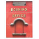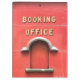 A photographic design of the front of an old railway station booking office, where you could purchase your travel tickets from.