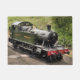 A beautifully restored steam train and carriages of a bygone era leaving the train station and the engine driver hands over the key before being allowed to proceed along the railway. England UK.