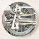 A photographic design of the wheel from a steam train.