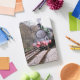 I was super excited when I got my cover in. It is attached by a magnet across the edge. I don’t think it will be very protective but it is very cute. I’m going to keep my iPad in a sleeve and use this face cover while I have it out. It folds to create a tilt for better viewing and to keep the iPad at a slight angle for typing. The colors are bright and it is fun. I’ve really enjoyed it. The personalization looks like amazing. It is the same color as the picture and is the same brightness. Well done! Very nice.