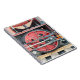 A photographic design of the wheel from a steam train.