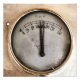 A vintage gauge from the footplate of a steam train reading pounds per square inch.