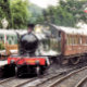 A beautifully restored steam train and carriages of a bygone era arriving at the train station.