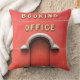 A photographic design of the front of an old railway station booking office, where you could purchase your travel tickets from.