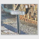 An art design of the sidings in an old steam railway yard showing the railway lines and goods train carriage wheels along with a sign showing "whistle".