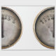 A vintage gauge from the footplate of a steam train reading pounds per square inch.