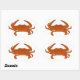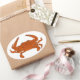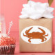 This seafood sticker features a bright orange steamed Atlantic blue crab, also known as hard or Maryland crab. Blue crabs are cooked by steaming and eaten as-is or added to soups, crabcakes, or other dishes. This illustration depicts a male blue crab or "Jimmy crab".