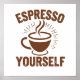 Start your day with a shot of humor and motivation! This clever "Espresso Yourself" pun is a fun and stylish nod to all coffee lovers. Featuring a retro illustration of a steaming cup of espresso, it's the perfect way to express your love for caffeine and your unique personality.
