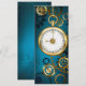 Turquoise, textured, steampunk background with brass and gold gears, a silver key and the clock. Steampunk style.
