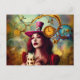 Steampunk Alice Hatter Keeping Time Postcard