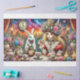 A delightful scene unfolds where reality meets fantasy in this vibrant watercolor illustration. Colorful flowers and clocks accent an elaborate tea setting where our steampunk girl and her white rabbit companion share stories. Soft watercolor effects blend with detailed whimsy to create a dreamy atmosphere. This design speaks to the heart of every wonderland dreamer.