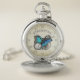 A fabulous steampunk style design with a butterfly in a lovely shade of blue, silver effect pocket watch chains and cogs. Looks great on these quality clocks with silver colored numbers.