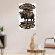 A mechanical buffalo stands on a platform, adorned with gears and pipes.