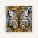 This notebook features a steampunk style with a butterfly, vintage clocks and the inside gears of clocks in shades of light blue and brown.