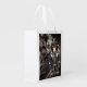 I own a lot of reusable grocery bags, but this one holds its box shape and simply stands up on its own even if there is nothing in it. Its stiffer than your regular reusable bag too, and the material is water resistant. I poured water on the exterior and it didn't penetrate inside to the other side. I'm buying a couple more. Wish I knew how durable these bags were or I would have purchased a few more with my initial order. I also like how it folds and buttons up when not in use, making it easy to put into a handbag or luggage. I haven't used this bag yet, as I purchased it for travel use, like when you're at the airport and need to small sturdy bag to place any airport purchases in, like food, souvenirs etc. I can tell you when you first see this bag, it looks very cheap, but after closer inspection of the material and the seams its a very sturdy reusable bag. I tested it out by putting some really heavy objects inside and I could not observe any stress to the bag at all. Another thing I like about it, is the fact the medium size that this is makes it easy to just carry it in your hand without the bottom of the bag scraping the ground, like most other bags do when you're short. That alone, deserves 5 stars. I just wish there were more colors to choose from! The PDX Airport Carpet printing looks just like the photo, and using this bag during travel might be a conversation piece when/if a native from Oregon happens to see it.
