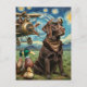 A steampunk Chocolate lab and ducks with the starry night by Van Gogh in the background