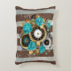 Steampunk Clock and Turquoise Roses on Striped Accent Pillow