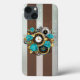Steampunk Clock and Turquoise Roses on Striped Case-Mate iPhone Case