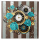 Steampunk Clock and Turquoise Roses on Striped Ceramic Tile