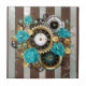 Steampunk Clock and Turquoise Roses on Striped Ceramic Tile