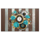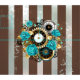 Steampunk Clock and Turquoise Roses on Striped Fabric