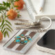 Steampunk Clock and Turquoise Roses on Striped Keychain