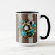 Steampunk Clock and Turquoise Roses on Striped Mug