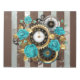 Steampunk Clock and Turquoise Roses on Striped Notepad