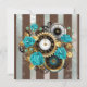 Steampunk Clock and Turquoise Roses on Striped Save The Date