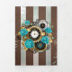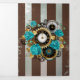 Steampunk Clock and Turquoise Roses on Striped Tri-Fold Announcement