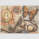 Steampunk inspired collage of a monarch butterfly, gold pocket watch, Victorian roses and a magical leather pouch for maps on this tissue paper. Great for dressing up your industrial and Victorian styled gifts as well as for your next decoupage project.