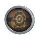 Antique, fantastic watches with gold and brass gears on a brown, rusty background. Steampunk style.
