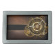 Antique, fantastic watches with gold and brass gears on a brown, rusty background. Steampunk style.