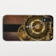 Antique, fantastic watches with gold and brass gears on a brown, rusty background. Steampunk style.