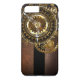 Antique, fantastic watches with gold and brass gears on a brown, rusty background. Steampunk style.