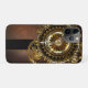 Antique, fantastic watches with gold and brass gears on a brown, rusty background. Steampunk style.