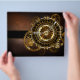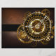 Antique, fantastic watches with gold and brass gears on a brown, rusty background. Steampunk style.