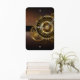 Antique, fantastic watches with gold and brass gears on a brown, rusty background. Steampunk style.