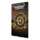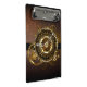 Antique, fantastic watches with gold and brass gears on a brown, rusty background. Steampunk style.