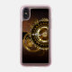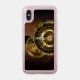 Antique, fantastic watches with gold and brass gears on a brown, rusty background. Steampunk style.