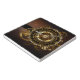Antique, fantastic watches with gold and brass gears on a brown, rusty background. Steampunk style.