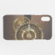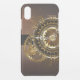 Antique, fantastic watches with gold and brass gears on a brown, rusty background. Steampunk style.