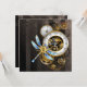 Antique dials with gold and brass gears, decorated with mechanical dragonfly on brown, striped background. Steampunk.