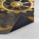 Antique dials with gold and brass gears, decorated with mechanical dragonfly on brown, striped background. Steampunk.